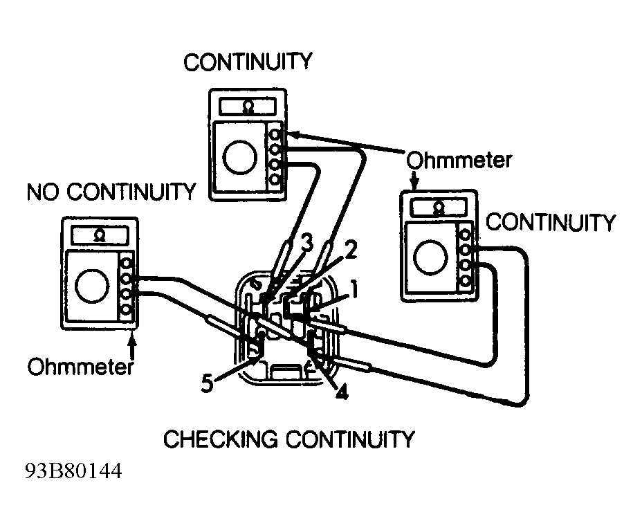 - Using ohmmeter, check continuity between specified terminals. See Fig 1 and Fig 2. Check ignition main relay operation by applying battery voltage and ground and checking continuity between specified terminals. See Fig 1 and Fig 2. Replace ignition main relay if defective.