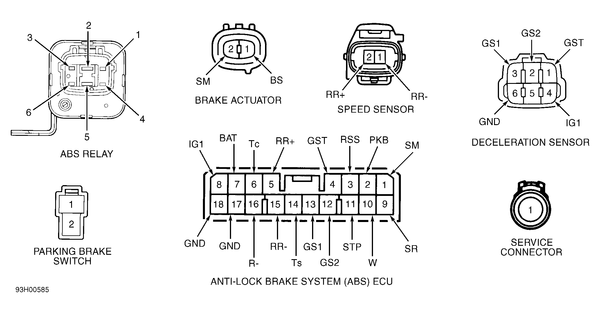 - Unplug ABS relay connector. See Figure. Using ohmmeter capable of testing diodes, check for continuity between ABS relay terminals No. 1 and 6. See Figure. Continuity should exist.