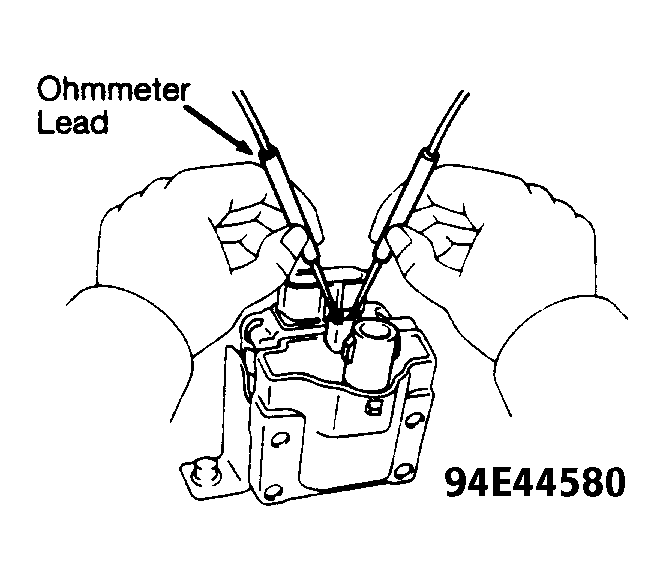 - Disconnect wiring from ignition coil so ignition coil is isolated from system. Using ohmmeter, check primary resistance between ignition coil positive (+) and negative (-) terminals. See Fig 1.