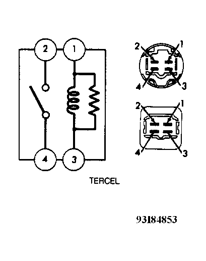 - Using an ohmmeter, check continuity between power window main relay terminals No. 1 and 3. Continuity should exist. See Fig 1. Apply battery voltage to terminal No. 1 and ground terminal No. 3. Continuity should exist at terminals No. 2 and 4. If relay does not test as described, replace power window main relay.