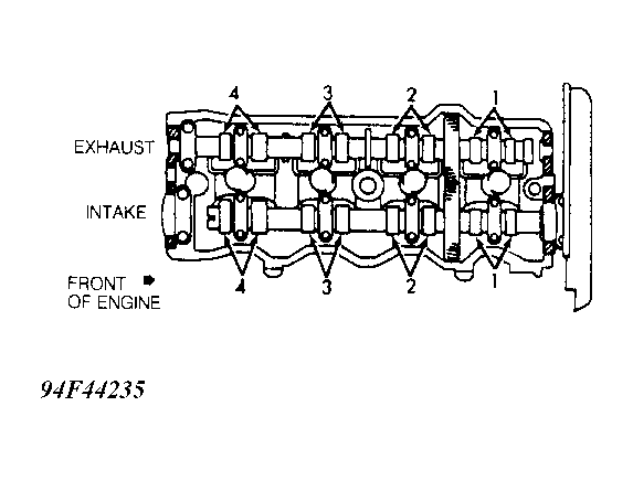 - Ensure valves on cylinder No. 1 are closed. If valves are not closed, rotate crankshaft 360 degrees (one full revolution). With cylinder No. 1 at TDC, check valve clearance on specified valves. See the VALVE CLEARANCE ADJUSTMENT SEQUENCE table. See Fig 1.