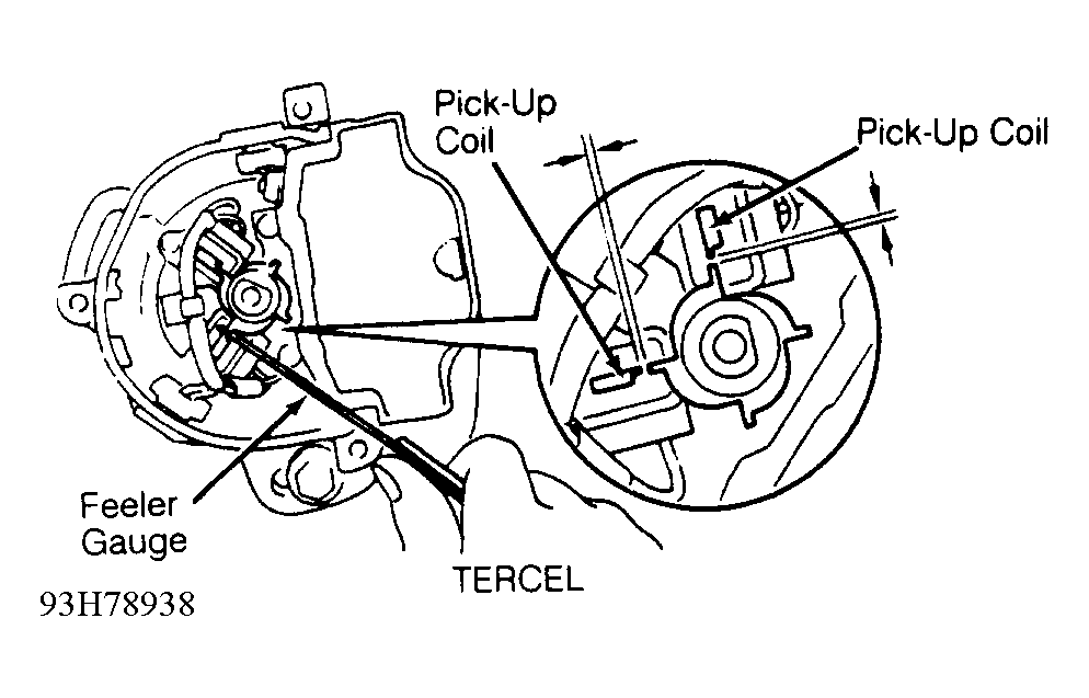 - Replace distributor assembly if pick-up coil air gap is not within specification. See PICK-UP COIL AIR GAP SPECIFICATIONS table.