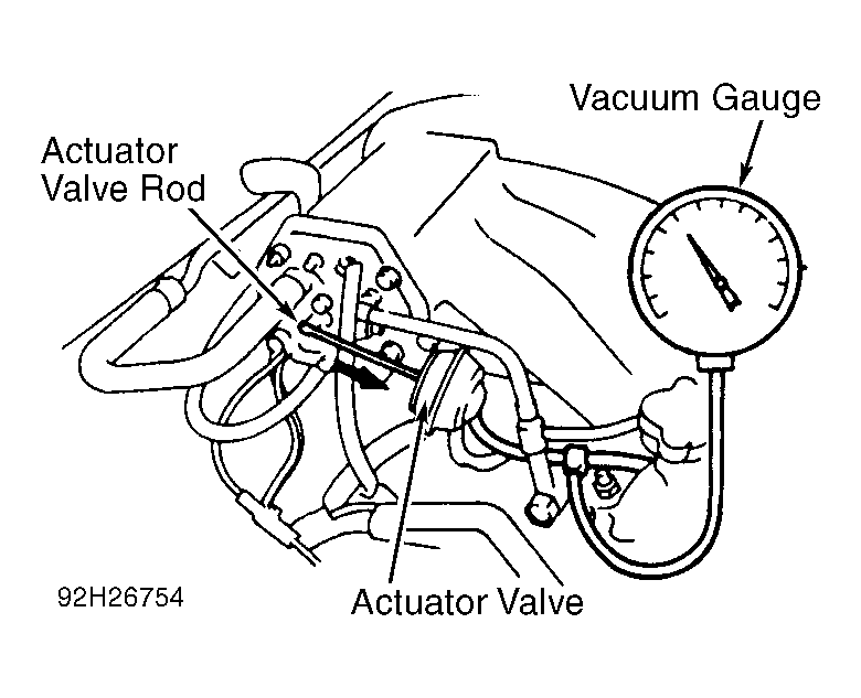 - Fully open throttle and ensure vacuum reading momentarily reads about 8 in. Hg and actuator valve rod pulls inward. If actuator valve rod does not pull inward, proceed to next step.