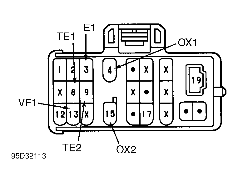 - Turn ignition on with engine off. Install a jumper wire between terminals TE1 and E1 in Data Link Connector (DLC). See Figure for DLC1 terminal illustration.