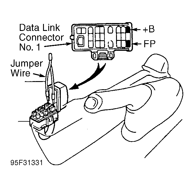 - Install Jumper Wire (SST 09843-18020) between +B and FP terminals of data link connector No. 1. See Fig 1.
