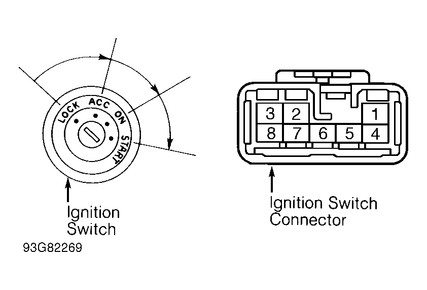 - With ignition switch in LOCK position, there should be no continuity between any terminals. With ignition switch in ACC position, there should be continuity between terminals No. 2 and 3. With ignition switch in ON position, there should be continuity between terminals No. 1, 2 and 3, and between terminals No. 7 and 8.
