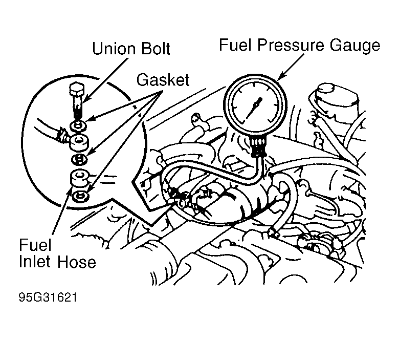 - Disconnect negative battery cable. Remove fuel pressure gauge. Reinstall union bolt using NEW gaskets. Tighten union bolt. Install negative battery cable.