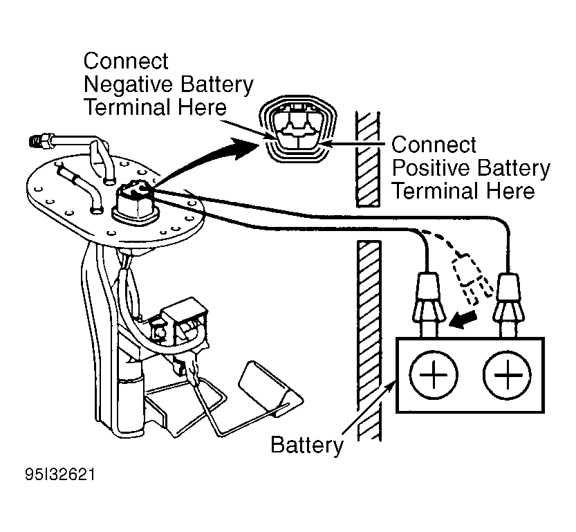 - Using scan tester manufacturer's instructions, activate fuel pump and note fuel pressure. Fuel pressure should be within specification. See FUEL PUMP PERFORMANCE table.NOTE: Fuel pump may also be activated by connecting battery voltage to specified terminals on fuel pump. See Figure.