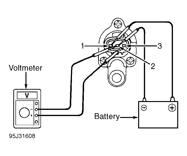 - Using jumper wires, connect positive battery terminal to terminal No. 1 (outer terminal) and negative battery terminal to terminal No. 2 (center terminal) on vehicle speed sensor terminals. See Fig 1.