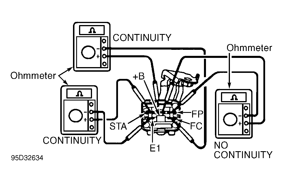 - To test circuit opening relay operation, apply battery voltage and ground to relay and use ohmmeter to check continuity between specified terminals. See Fig 1 and Fig 2. Replace circuit opening relay if defective.