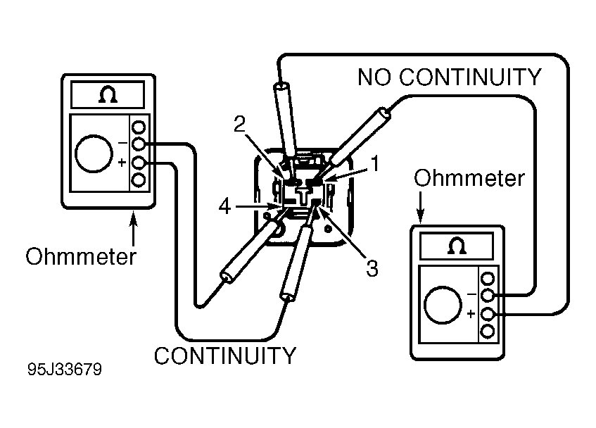 - To test supercharger relay continuity, using ohmmeter, check continuity between specified terminals. See Fig 1 and Fig 2.