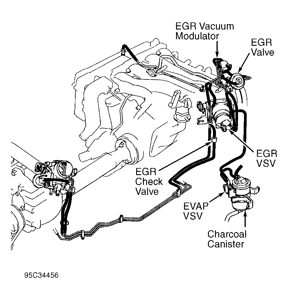 - Apply air pressure on Black-colored side of EGR check valve. Air should not flow through EGR check valve. Replace EGR check valve if defective.
