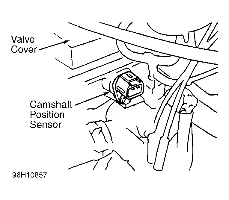 - Disconnect electrical connector from camshaft position sensor, located on rear of cylinder head, just below valve cover. See Fig 1. Remove camshaft position sensor from cylinder head.