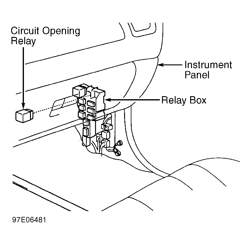 - Ensure ignition is off. Remove circuit opening relay. See CIRCUIT OPENING RELAY LOCATION table. See Fig 1.CIRCUIT OPENING RELAY LOCATION