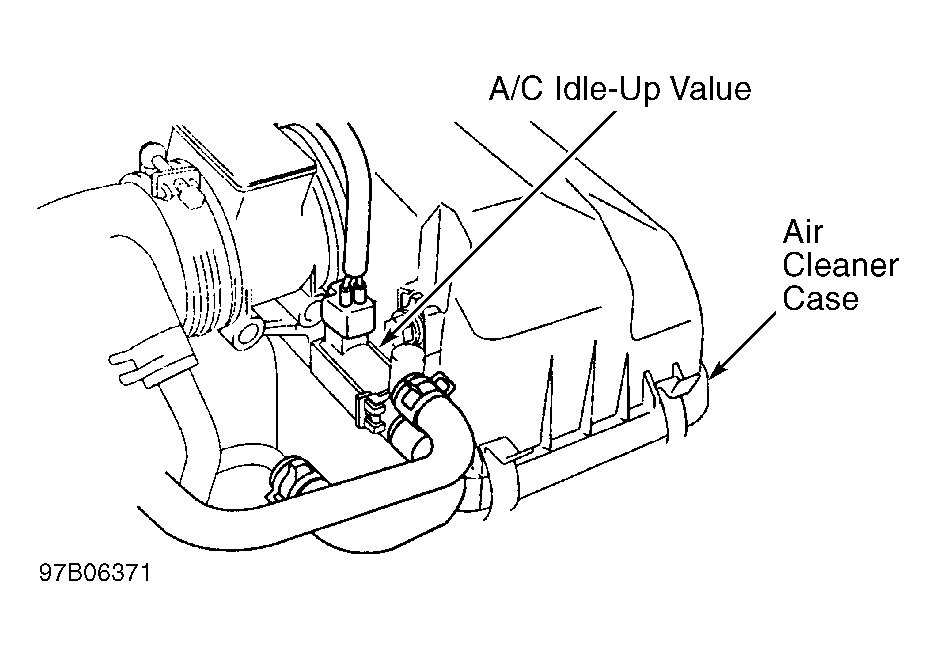 NOTE: The A/C idle-up valve may also be referred to as A/C idle-up Vacuum Switching Valve (VSV).