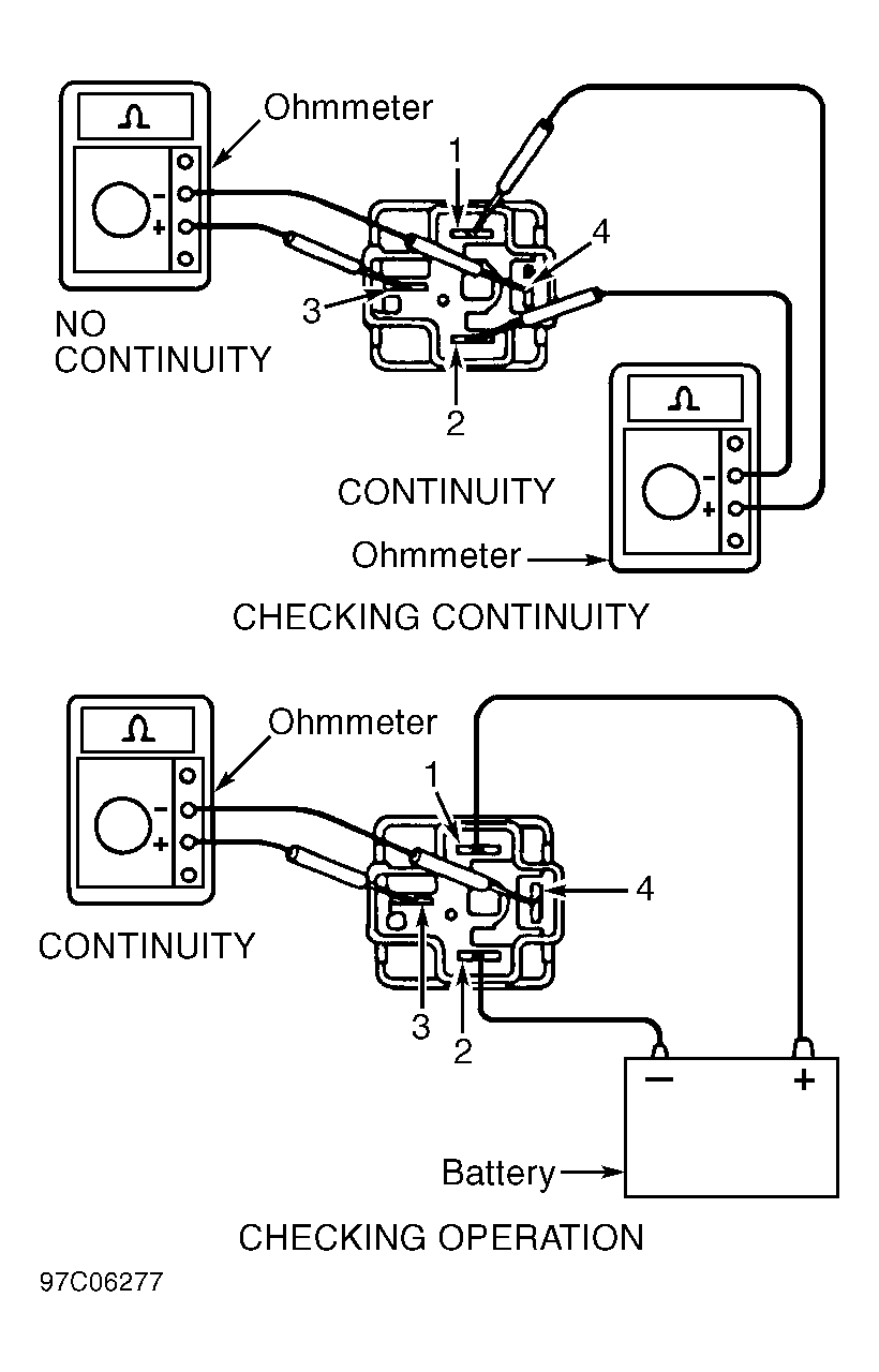 - To check EFI main relay operation, apply battery voltage and ground to relay and use ohmmeter to check continuity between specified terminals. See Fig 1. Replace EFI main relay if defective.