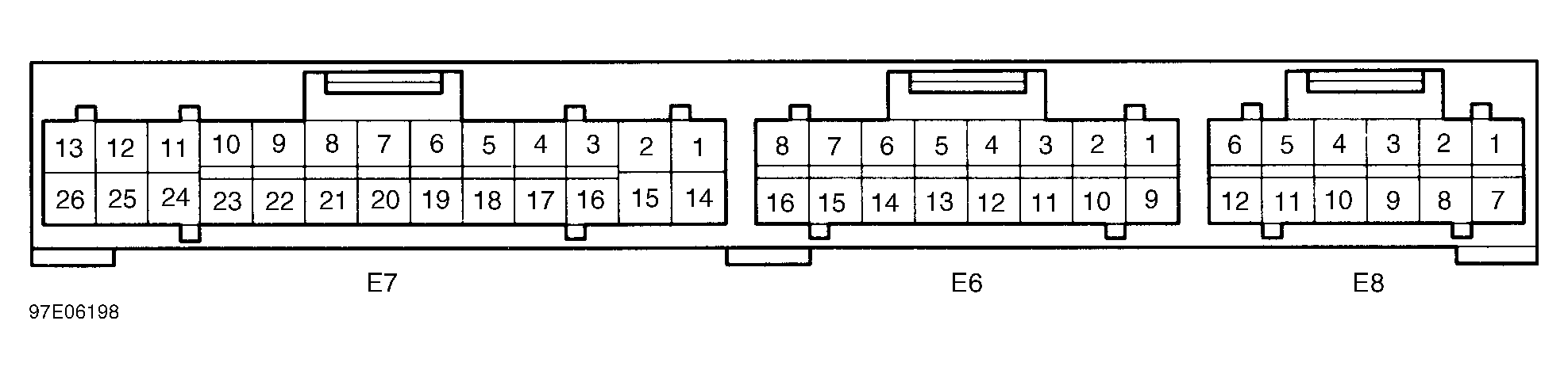 - Access ECM behind glove box. Turn ignition on. Using DVOM, backprobe ECM connector. Measure voltage between ground and injector terminals at ECM E7 connector. See IDENTIFYING INJECTOR TERMINALS table. See Figure. If voltage is 9-14 volts for each circuit, go to step 5). If voltage is not 9-14 volts, go to next step.IDENTIFYING INJECTOR TERMINALS