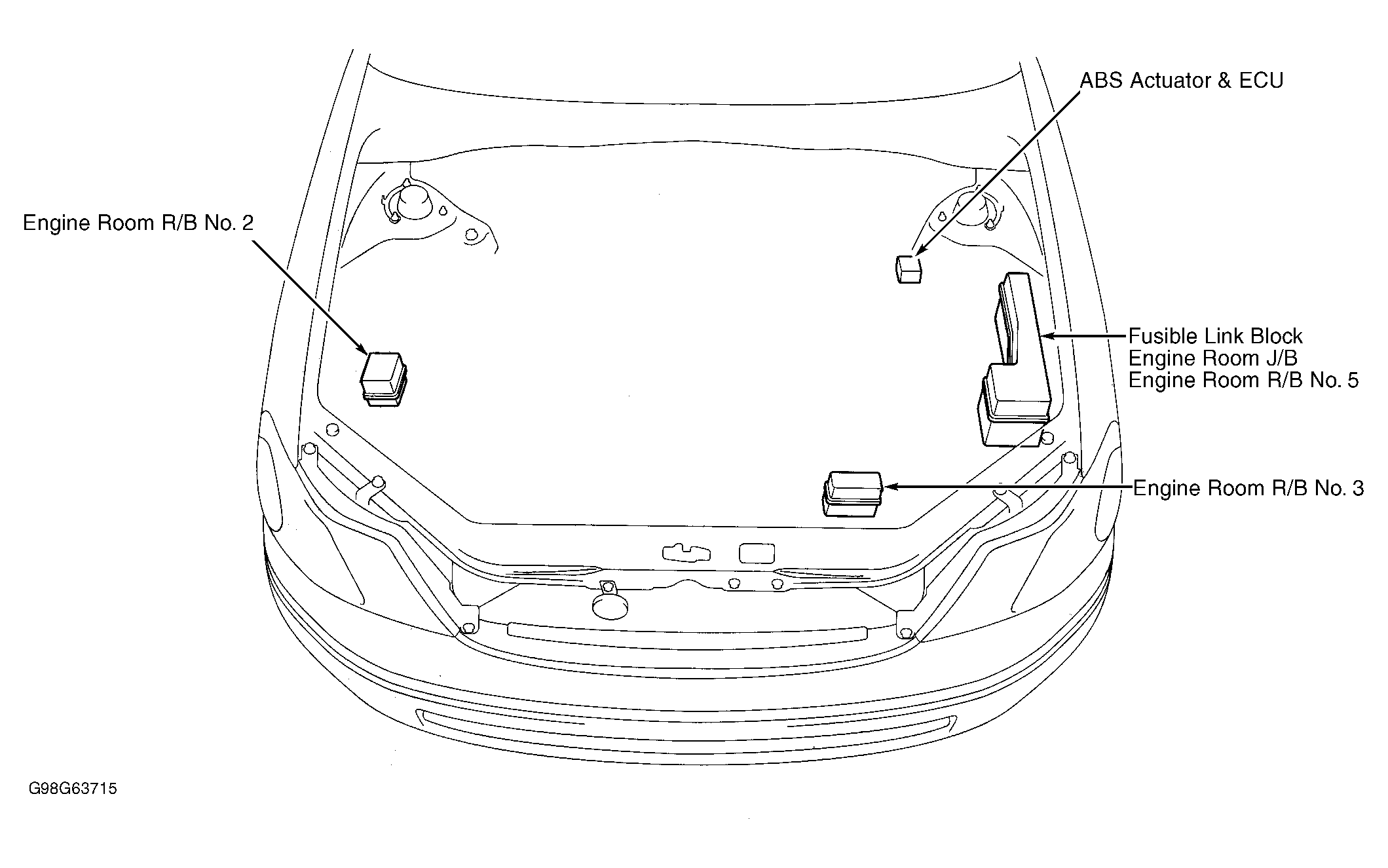 | Engine Room R/B No. 2 | On right side of engine compartment. See Figure. |