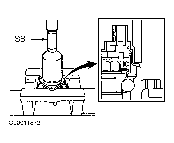 Place speed sensor in axle hub assembly so that sensor sits at bottom of hub when installed. Using a press and Sensor Installer (09214-76011), gently press sensor into axle hub assembly. See Fig 1. Reinstall front axle hub assembly. Reconnect speed sensor connector.