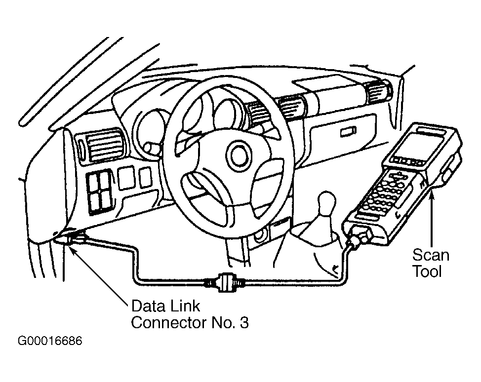 OBD-II regulations (SAE J-1962) standardizes configuration of Data Link Connector (DLC) No. 3. DLC No. 3 is located under driver's side of instrument panel, left of steering column. See Fig 1.