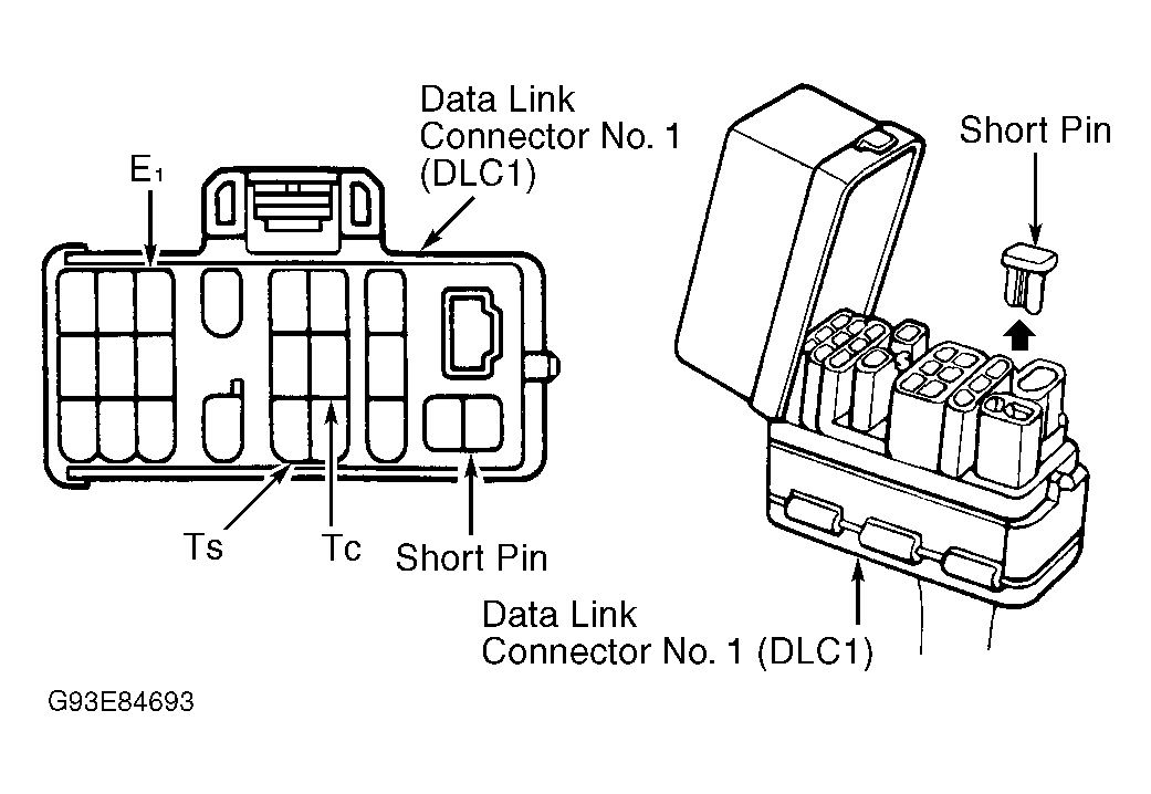 of DLC1. DLC1 is located in engine compartment on left side of engine. See Figure. Ensure ABS warning light blinks 4 times per second. If ABS light does not blink, go to ABS WARNING LIGHT under DIAGNOSIS & TESTING. If ABS warning light blinks, go to next step.NOTE: When measuring vehicle height in following steps, measure at center of lower body of vehicle.