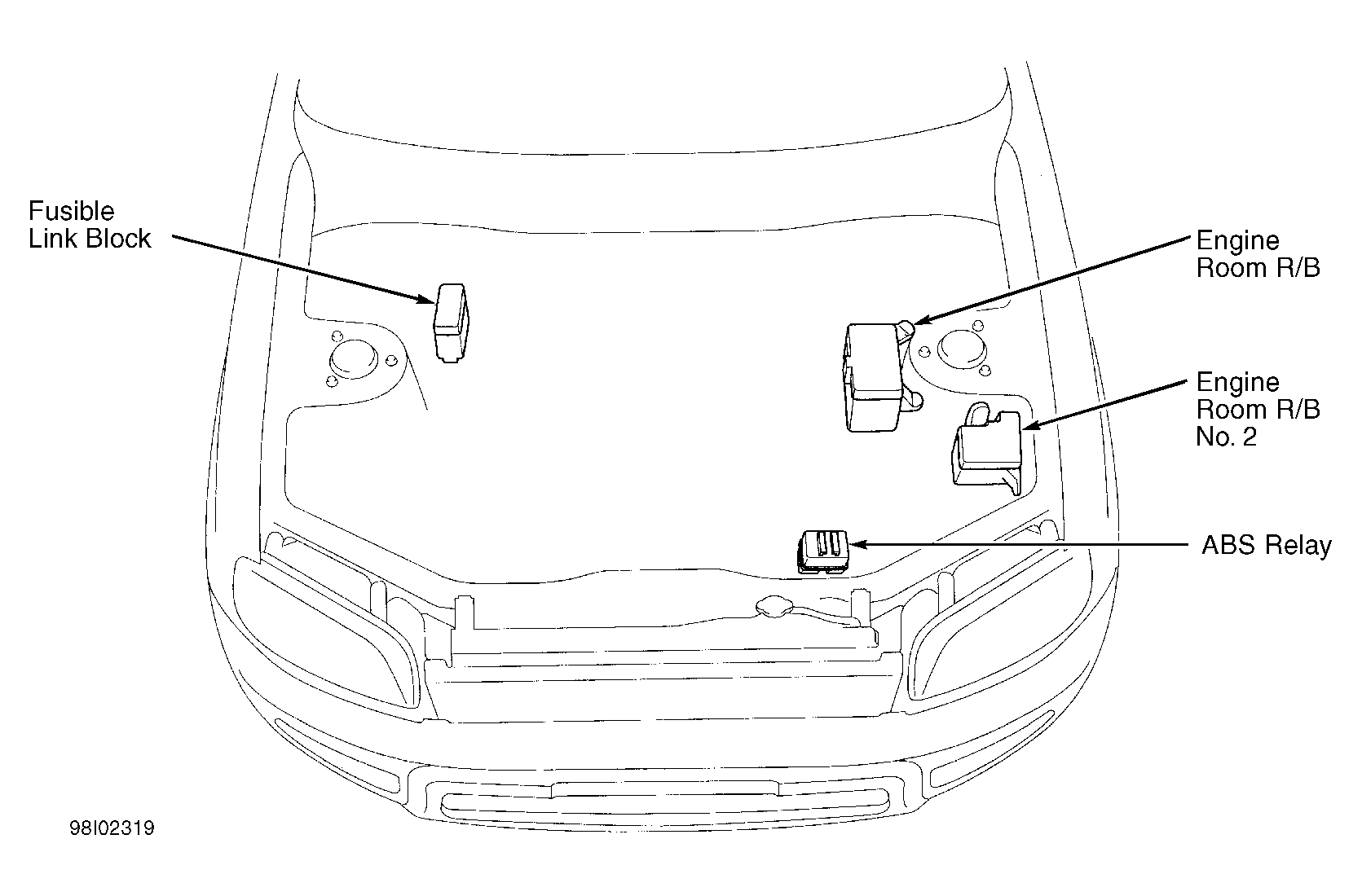 | Engine Room R/B No. 2 | In front of left front strut tower. See Figure. |