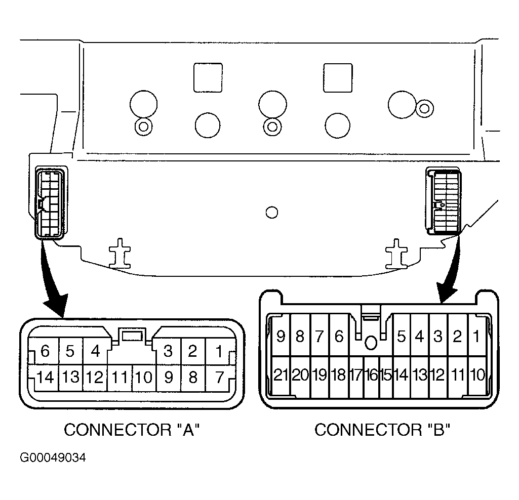 Remove A/C control assembly. See A/C CONTROL ASSEMBLY under REMOVAL & INSTALLATION. Leave electrical connectors attached to A/C control assembly. Using DVOM to backprobe at appropriate terminals, check for voltage or continuity as specified. See A/C CONTROL ASSEMBLY INPUT SPECIFICATIONS table. See Fig 1. If readings are as specified, substitute known-good A/C control assembly and retest system. If readings are not as specified, repair affected circuit as necessary and retest system. See WIRING DIAGRAMS .
