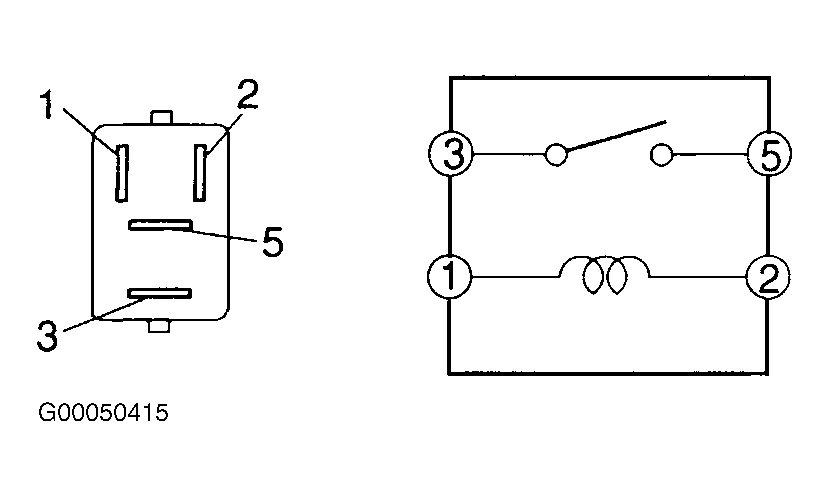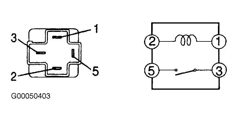 Remove relay located in driver side junction block. Continuity should exist between relay terminals No. 1 and 2 at all times. See Fig 1 and Fig 2 . Continuity should not exist between relay terminals No. 3 and 5. Apply battery voltage across relay terminals No. 1 and 2. Continuity should now exist between relay terminals No. 3 and 5. If continuity is not as specified, replace relay. If continuity is as specified, inspect wire harness and connector between power main relay and ECU, and between battery and power main relay. Repair or replace wire harness and/or connector as necessary.