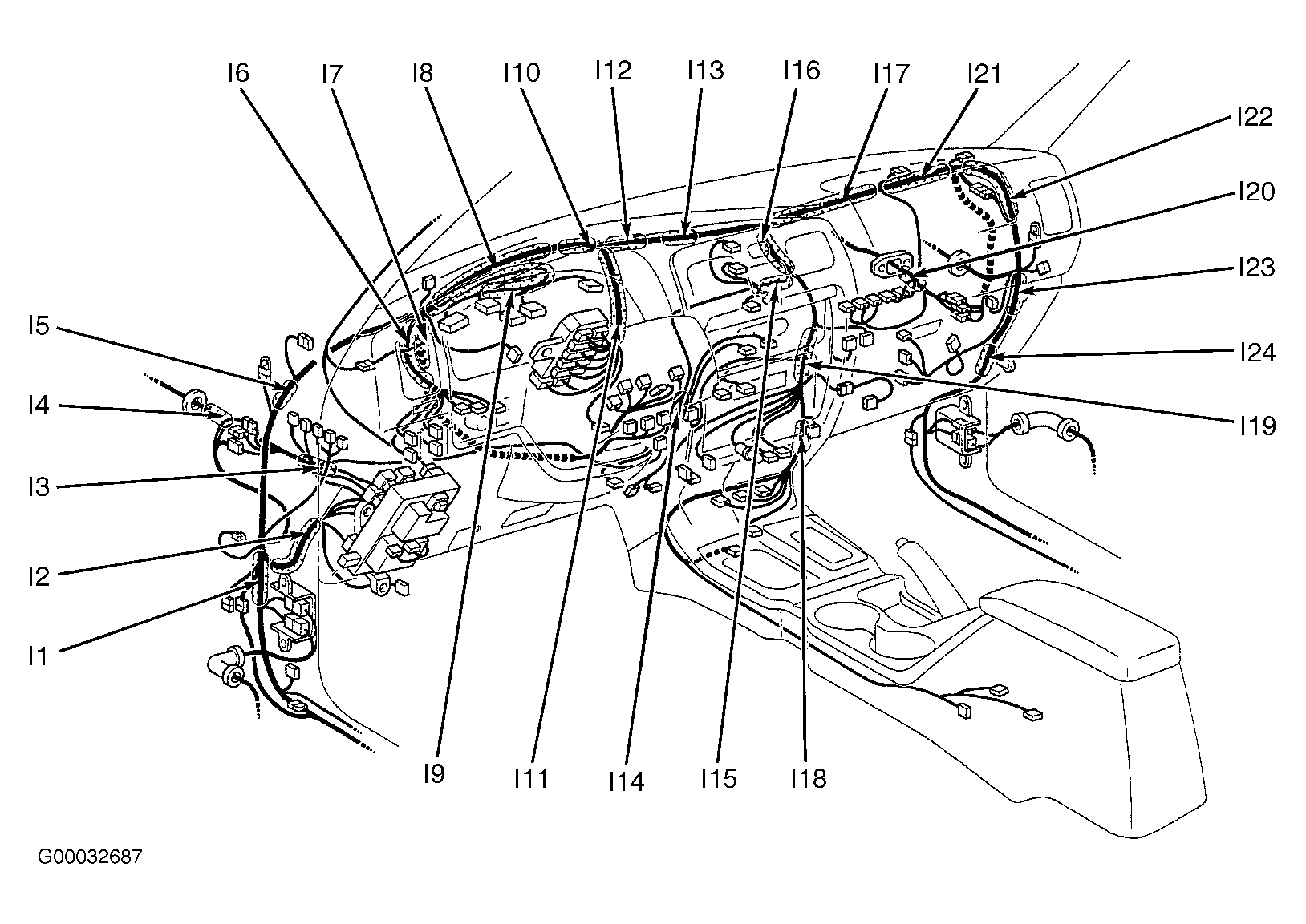 - Check for open and short in Black/White wire and electrical connectors between terminal No. 7 at ECM electrical connector E14 and splice I21. See WIRING DIAGRAMS article. Splice I21 is located at passenger's side of instrument panel. See Fig 1.