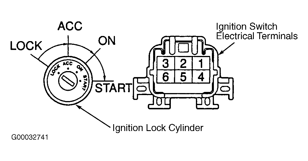 Using ohmmeter, check that continuity is as specified between indicated ignition switch electrical terminals in relation to ignition lock cylinder position. See IGNITION SWITCH CONTINUITY table. Replace ignition switch if defective. See IGNITION SWITCH under REMOVAL & INSTALLATION.IGNITION SWITCH CONTINUITY
