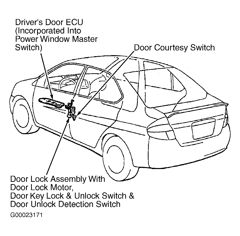 For body control system component locations, see illustration. See Fig 1 and Fig 2 . For driver door control system component locations, see Fig 3.