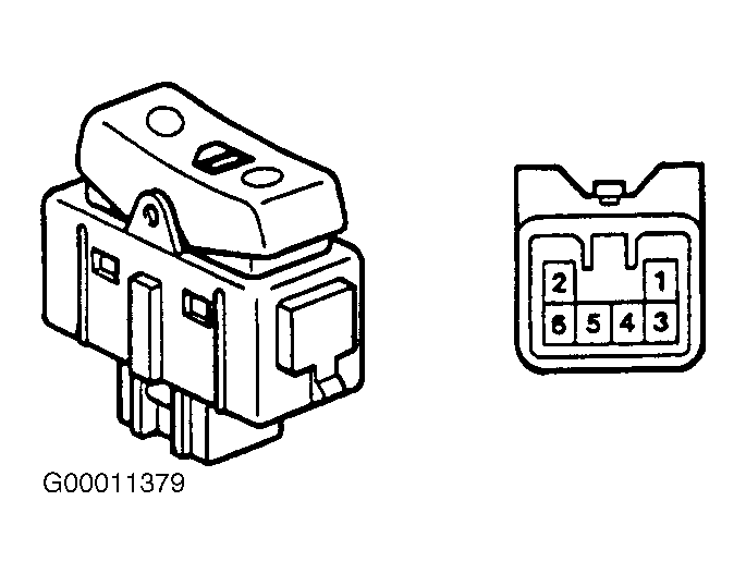 Note door lock control switch electrical terminal identification. See Fig 1. Using ohmmeter, check that continuity is as specified door lock control switch electrical terminals in relation to door lock control switch position. See DOOR LOCK CONTROL SWITCH CONTINUITY table. Replace door lock control switch if continuity is not as specified.DOOR LOCK CONTROL SWITCH CONTINUITY