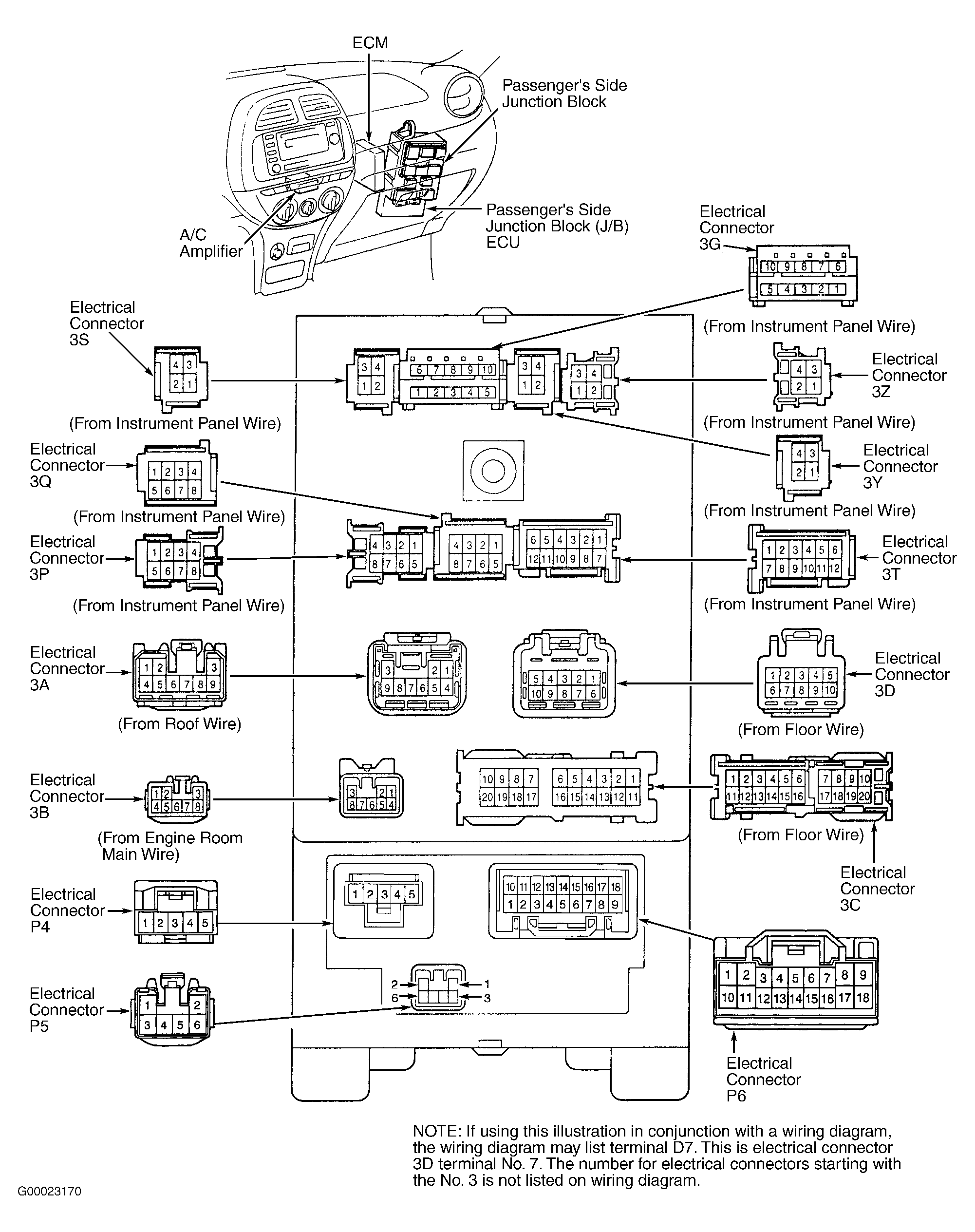 Fig 2: Locating Passenger's Side Junction Block Electronic Control Unit & Identifying Electrical Terminals & Electrical Connector Terminals