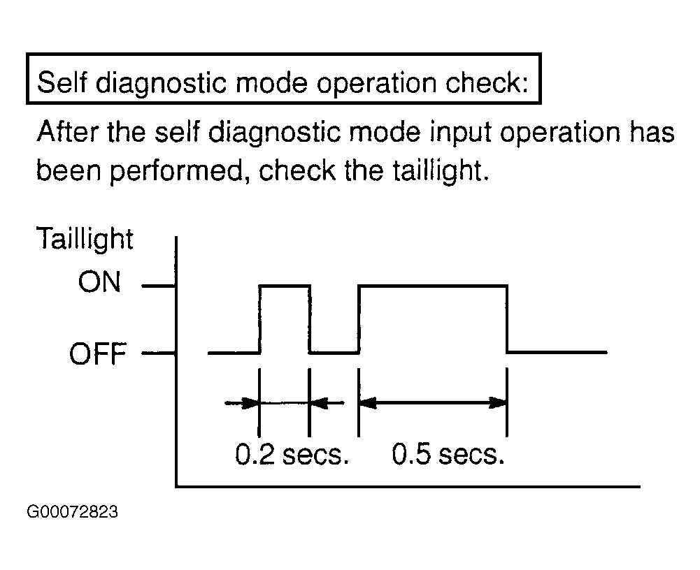 - Enter into self-diagnostic mode and perform self-diagnostic mode check. See Fig 2. If steps 1 or 2 from illustration are output, go to next step. If step 3 from illustration is output, go to step 10. If there is no response from taillight, go to step 11.
