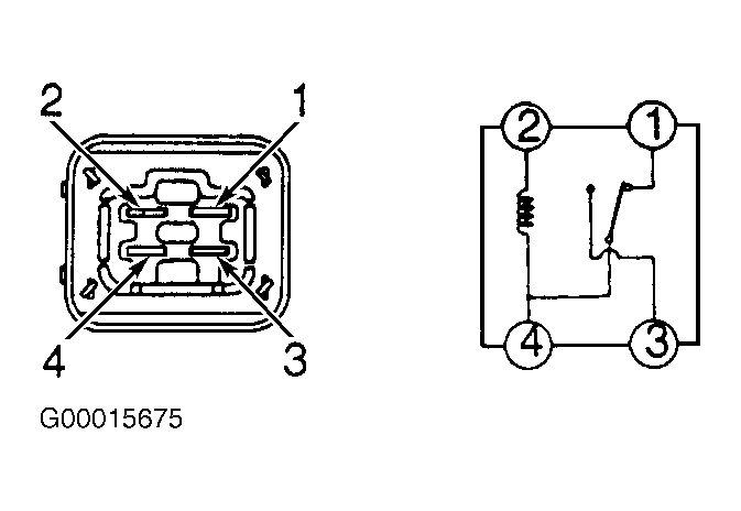 - Note identification of electrical terminals on headlight dimmer relay. See Fig 1. Using ohmmeter, check that continuity exists between terminals No. 1 and 4, and No. 2 and 4 on headlight dimmer relay.