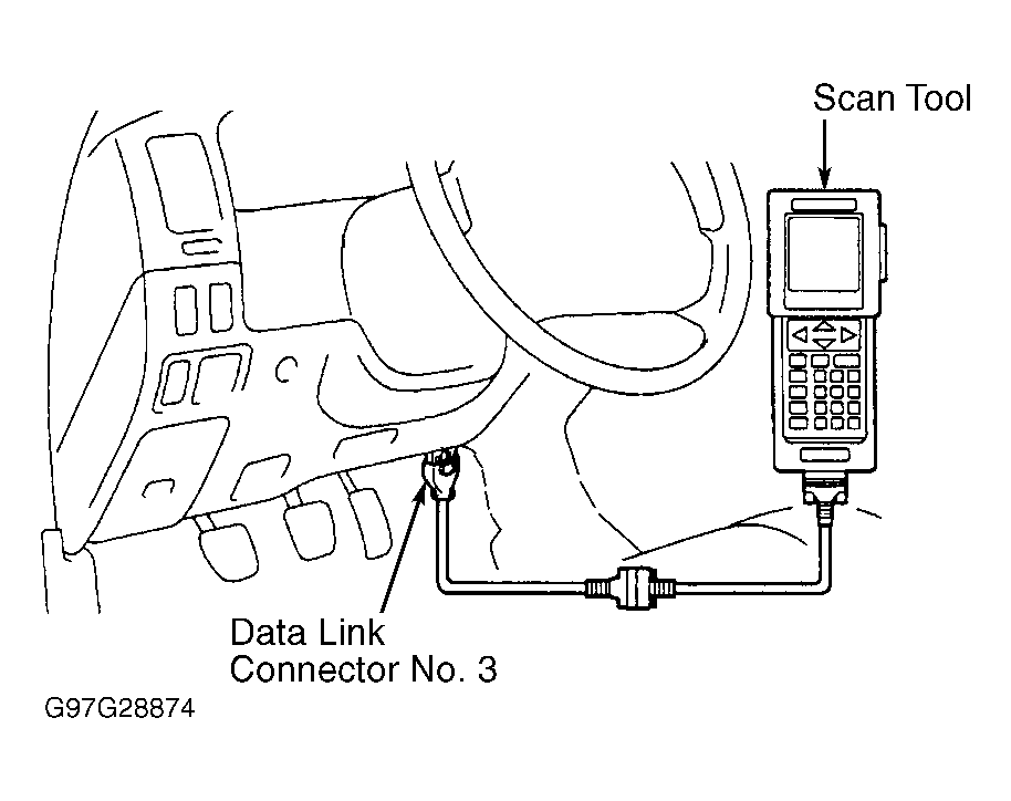 OBD-II regulations (SAE J-1962) standardizes configuration of Data Link Connector (DLC) No. 3. DLC No. 3 is located at driver's side of instrument panel. See Fig 1.