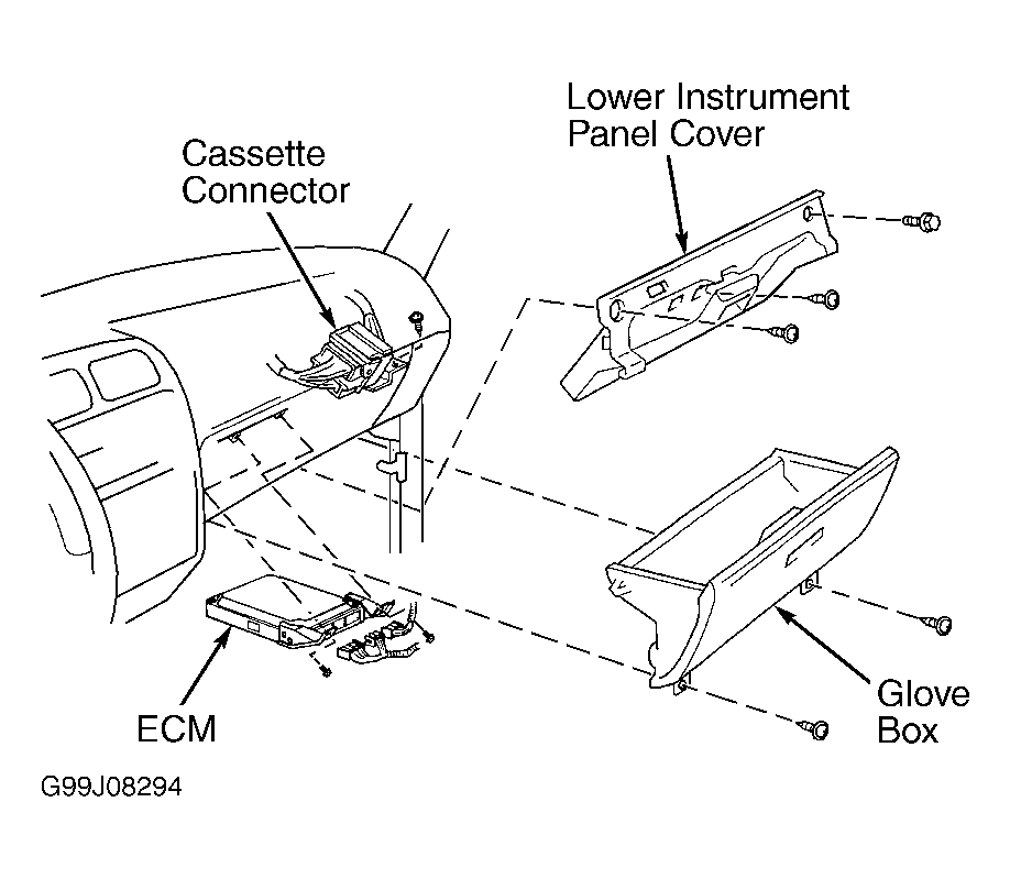 Engine Control Module (ECM) is located behind glove box. See
