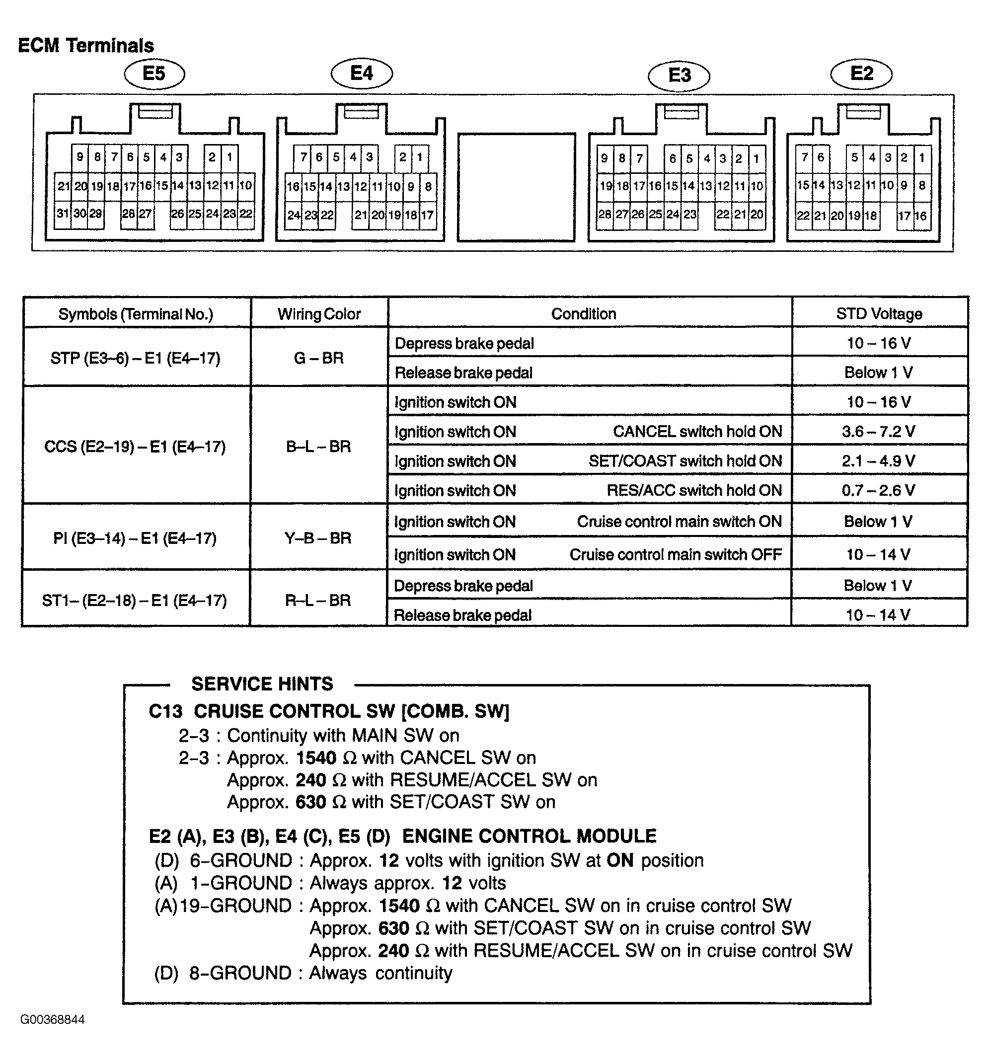 From ECM and cruise control voltage and resistance values, see Fig 1.