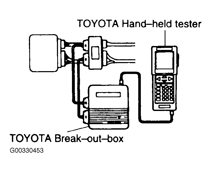 - Connect the TOYOTA break-out-box and TOYOTA hand-held tester to the vehicle. See Fig 5.
