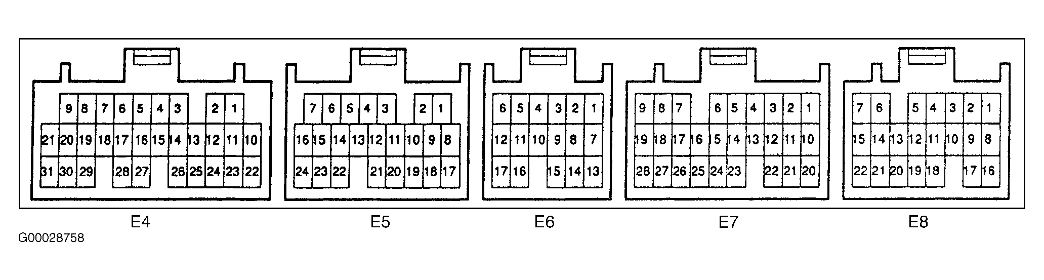 - Ensure ignition is on. Using voltmeter, check voltage between body ground and terminal No. 8 (Green/White or White wire) at ECM electrical connector E8. This is the MREL terminal at ECM. Voltage should be 9-14 volts. If voltage is within specification, go to next step. If voltage is not within specification, check ECM ground circuit. See WIRING DIAGRAMS article. If ECM ground circuit is defective, repair ground circuit as necessary. If ECM ground circuit is okay, replace ECM. On models equipped with engine immobilizer system, if ECM is replaced, ECM must be programmed with proper ignition key code for engine immobilizer system. Models equipped with engine immobilizer system may be identified by looking at the ignition key. On models equipped with engine immobilizer system, the top of the ignition key is thicker than a standard ignition key, as a transponder chip is incorporated into the top of the ignition key. For programming procedures, see COMPUTER RELEARN PROCEDURES article in GENERAL INFORMATION, or appropriate ENGINE IMMOBILIZER SYSTEMS article in ACCESSORIES & EQUIPMENT.