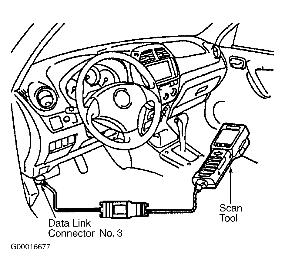 - Connect hand-held tester to data link connector No. 3 at driver's side of instrument panel. See Figure. Turn ignition on and then turn hand-held tester on. Read STA signal display on hand-held tester with ignition on, and with ignition switch in START position and engine cranking. STA signal display should read OFF with ignition on, and ON with ignition switch in START position. If STA signal display is not as specified, go to next step. If STA signal display is as specified, diagnose by symptom. See TROUBLE SHOOTING - NO CODES article.