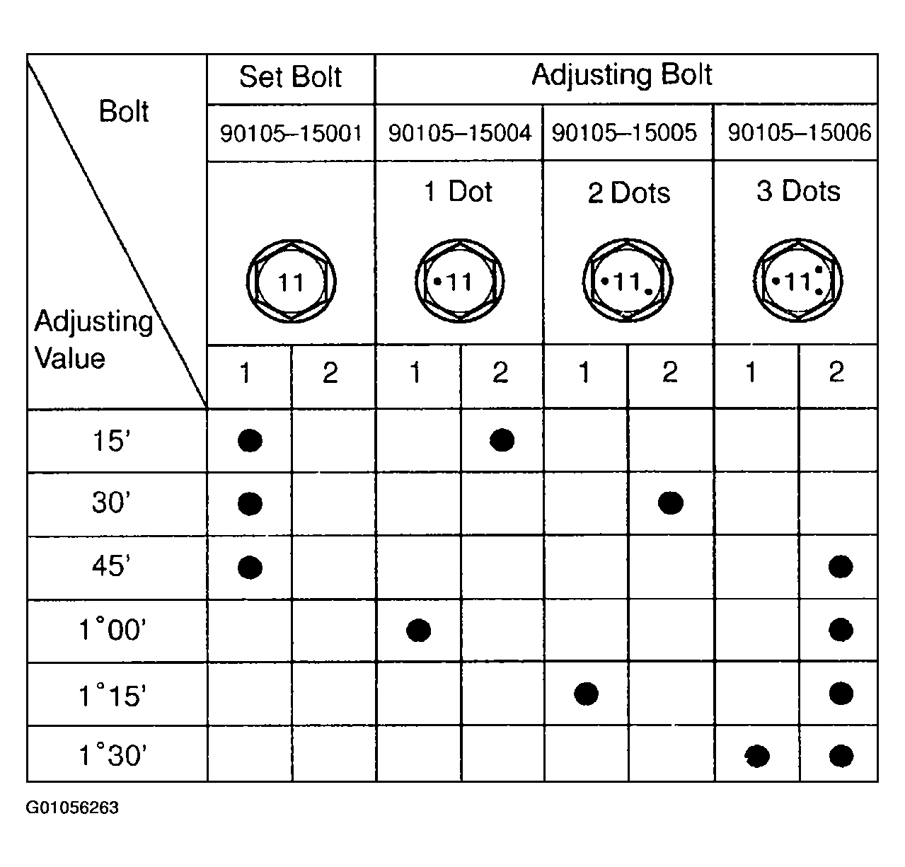 Fig 9: Displaying Camber Adjustment Bolt Table