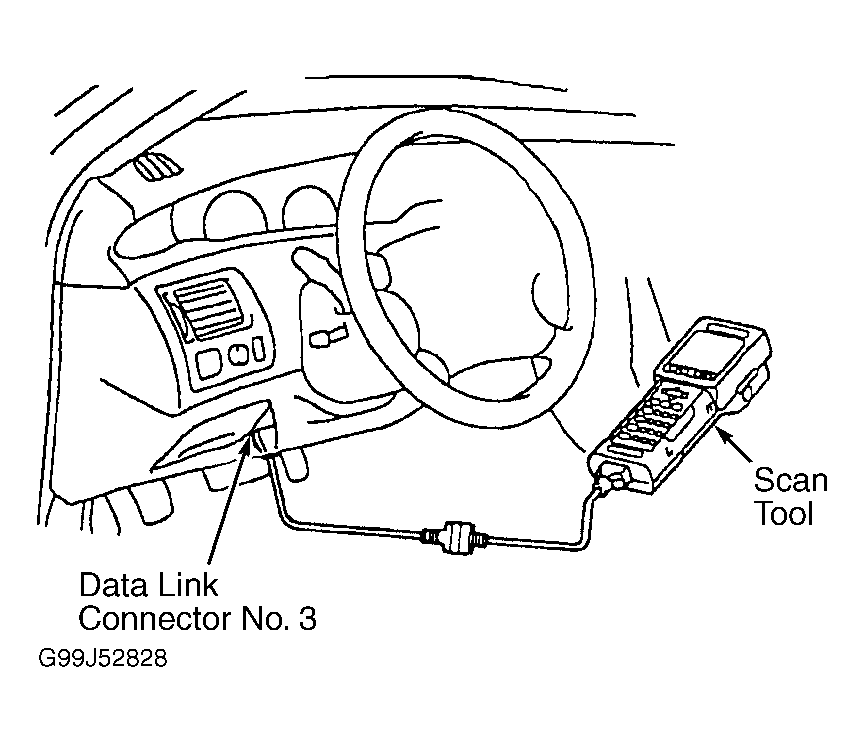Connect the OBD II scan tool or hand-held tester to DLC3. See Figure. If the display indicates a communication fault in the tool, inspect DLC3. See DATA LINK CONNECTOR NO. 3 INSPECTION under SCAN TOOL PROBLEMS. - Retrieve DTCs & Freeze Frame Data