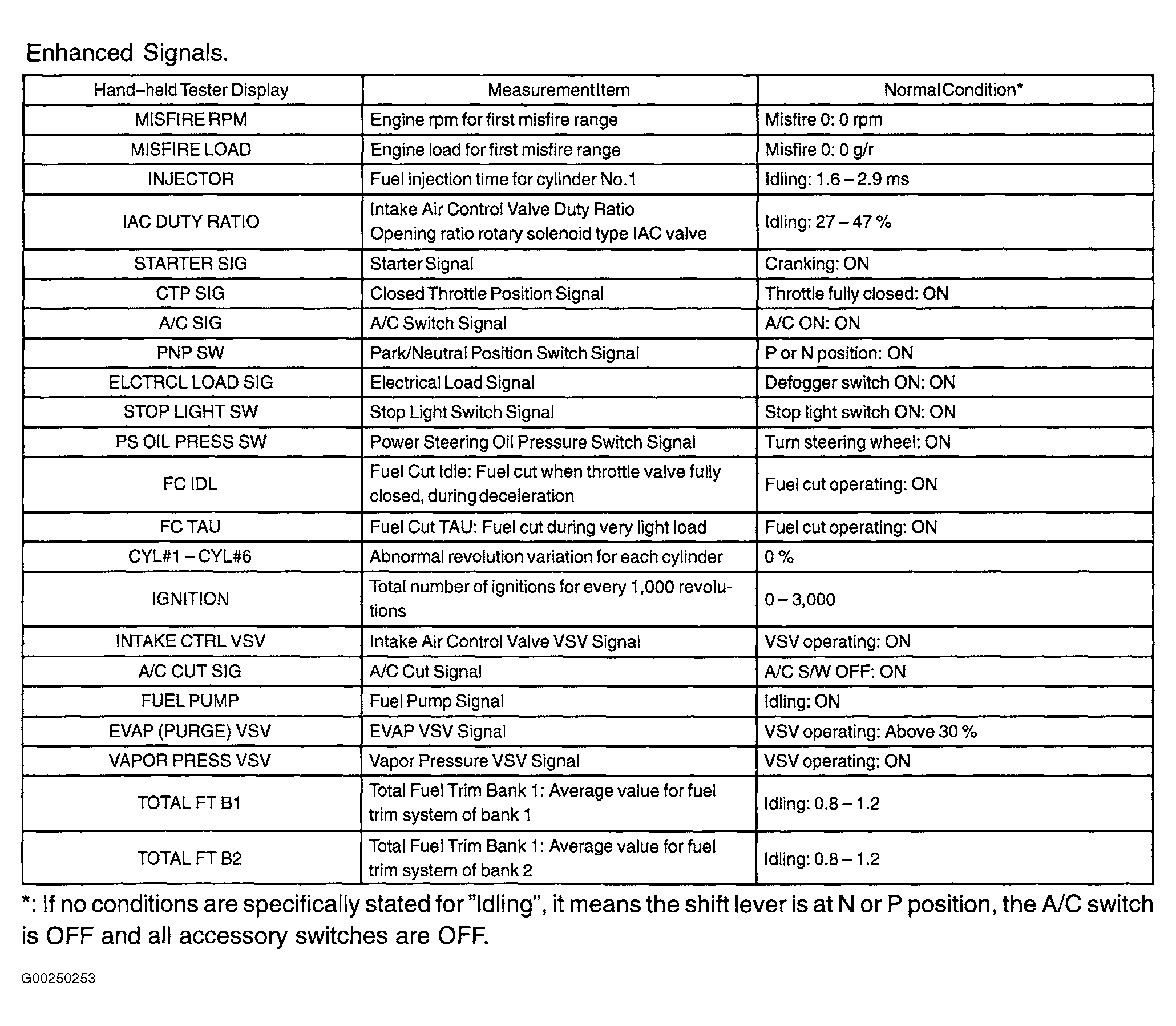 Home >> Toyota >> 2003 >> Highlander Limited, AWD >> Repair and Diagnosis >> Engine Performance >> System >> Engine Control System Self Diagnostics - V6 >> Self-Diagnostic System >> Engine Operating Condition