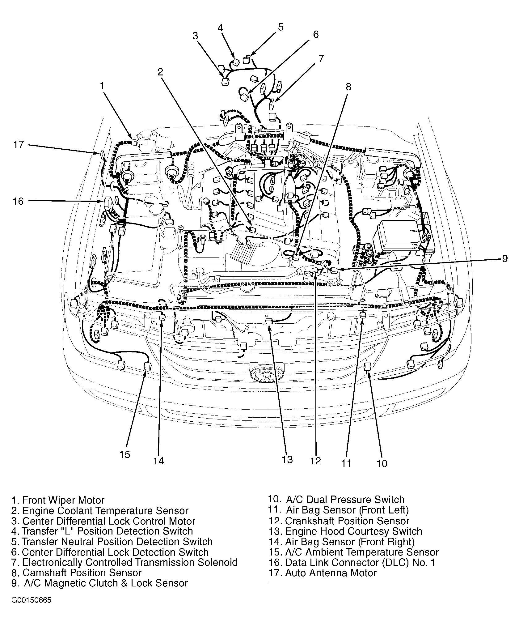| Data Link Connector (DLC) No. 3 | Behind left side of dash, right of steering column. |