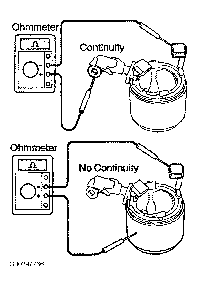 2. Using an ohmmeter, verify that there is no continuity between the field coil end and field frame. If continuity is present, replace the field frame. See Fig 1.