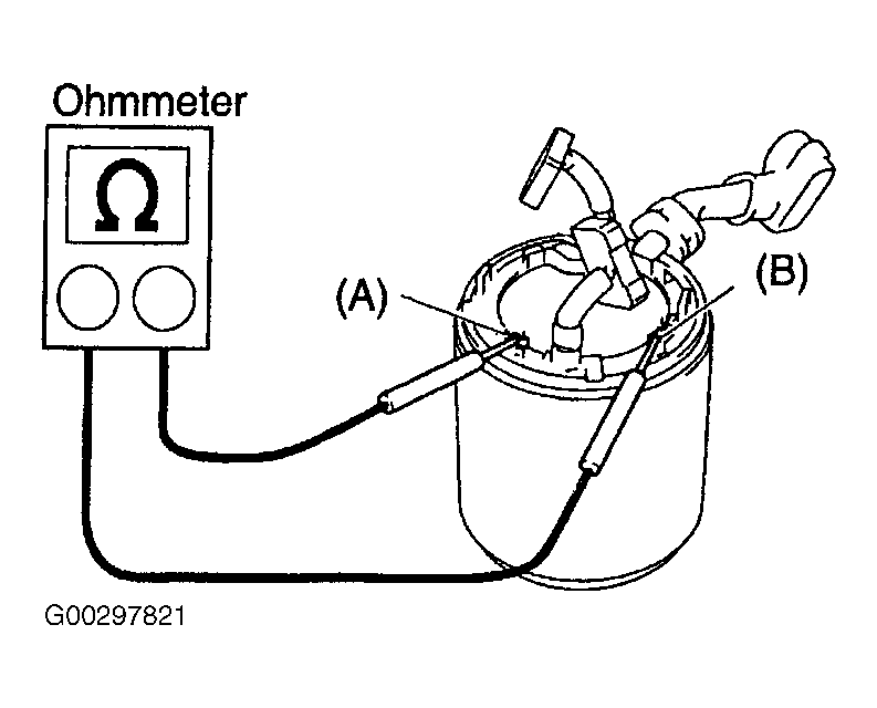 3. Using an ohmmeter, measure the resistance between shunt coil terminals "A" and "B". See Fig 2. Verify coil resistance is within specification. See STARTER SPECIFICATIONS . If the resistance is not as specified, replace the starter yoke assembly.