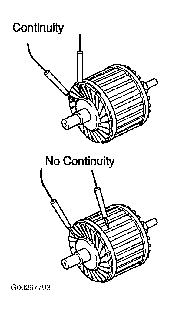 - Check the commutator for ground. Using an ohmmeter, check that there is no continuity between the commutator and armature coil core. See Fig 1. If there is continuity, replace the armature.