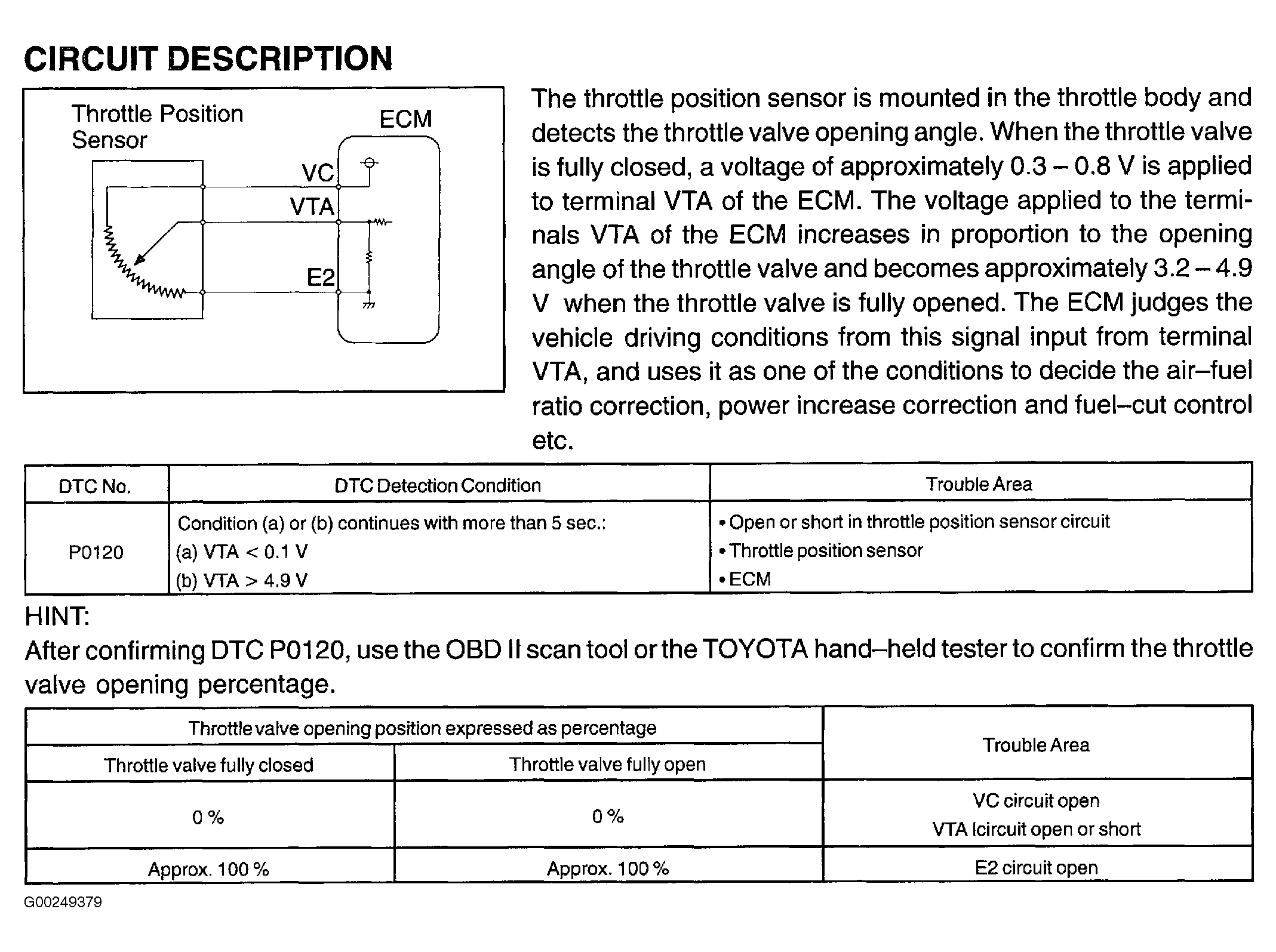 For circuit description, DTC detection and possible causes, see Fig 1.