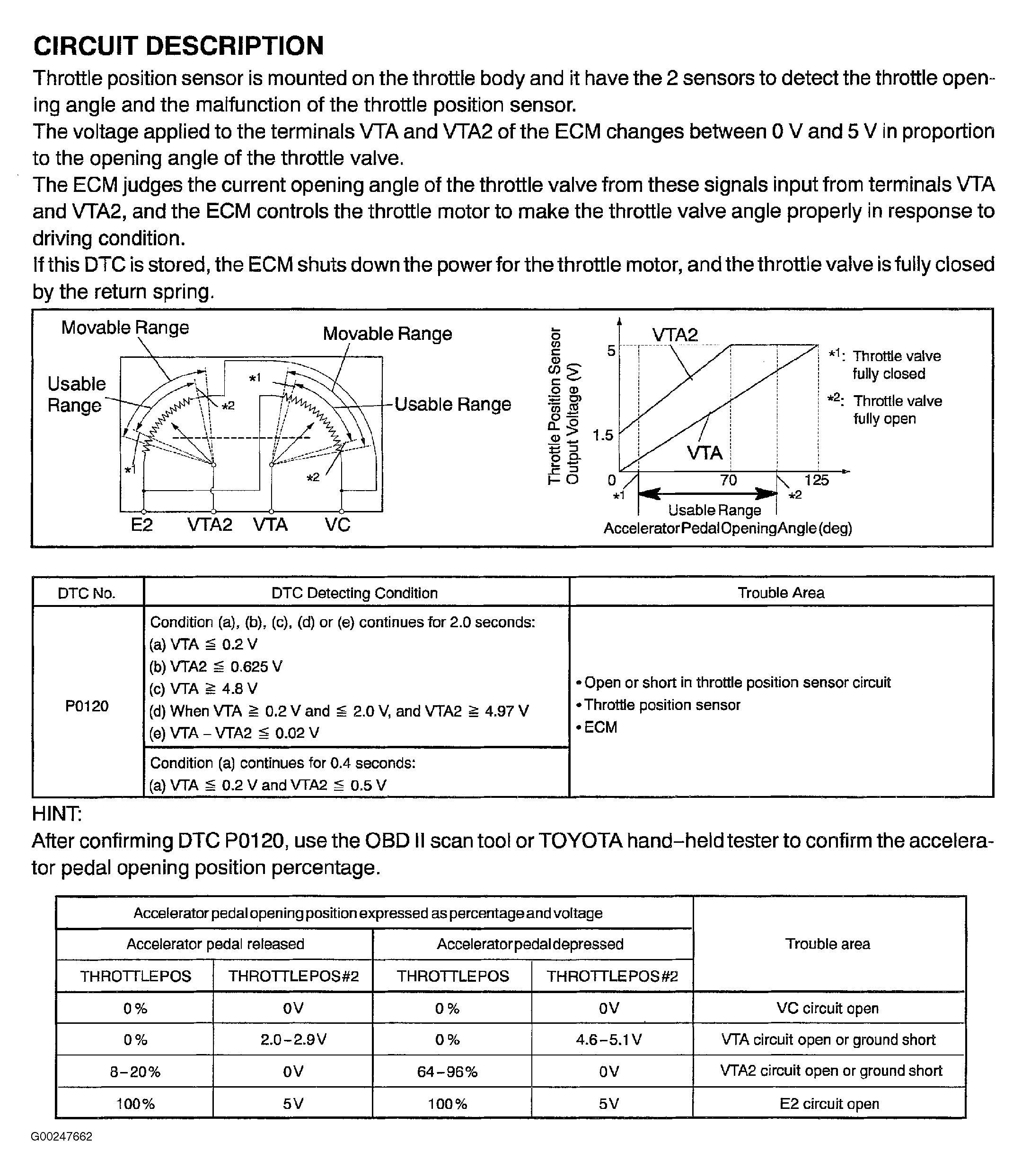 Home >> Toyota >> 2003 >> Matrix Base, 4WD >> Repair and Diagnosis >> External Pages >> Different car >> Section 104 (Engine Control System Self Diagnostics) >> Diagnostic Tests >> DTC P0120: Throttle/Pedal Position Sensor/Switch Circuit >> Circuit Description & Possible Causes